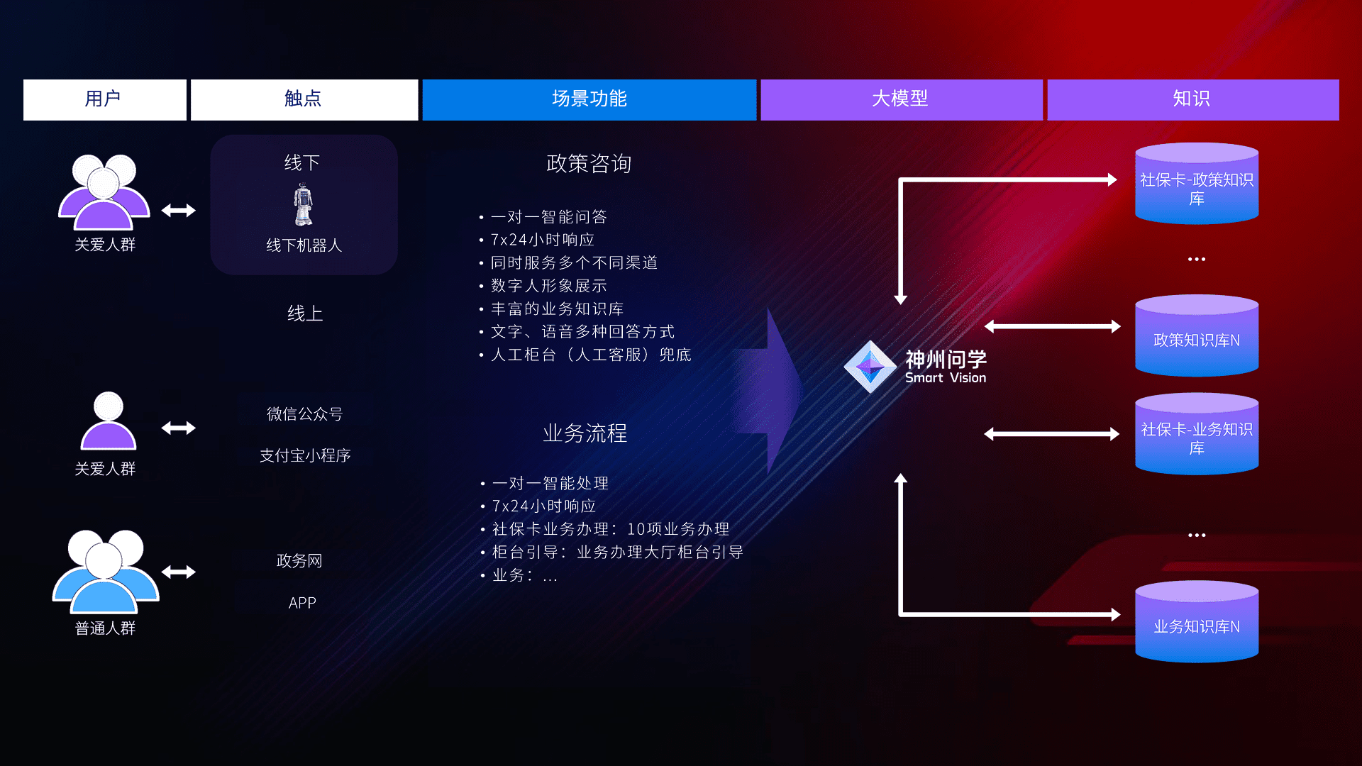 • 线上线下全覆盖:线上提供微信公众号、、、支付宝小程序、、政务网、、、、app多种渠道,,,与线下机器人形成完整服务体系。。。。