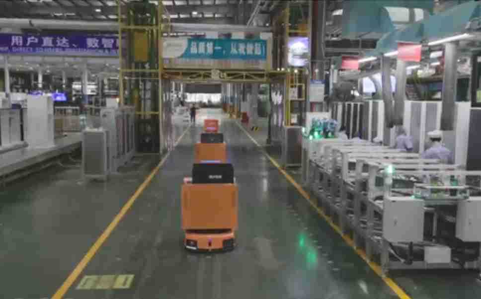 为车载冰箱物流配送打造的智能解决方案,,包含产中物流通过潜伏举升AMR搬运至线边,,产后成品物流智能仓储,,,流程包含产中物流智能齐套入库,,,线边安灯叫料AMR智能配送至线边,,,成品入库、、出库,,,,通过无人堆高车机器人,,,,智能仓储管理替代人工作业管理,,,实现更高存储、、、更高效率、、更具柔性化的解决方案。。。。